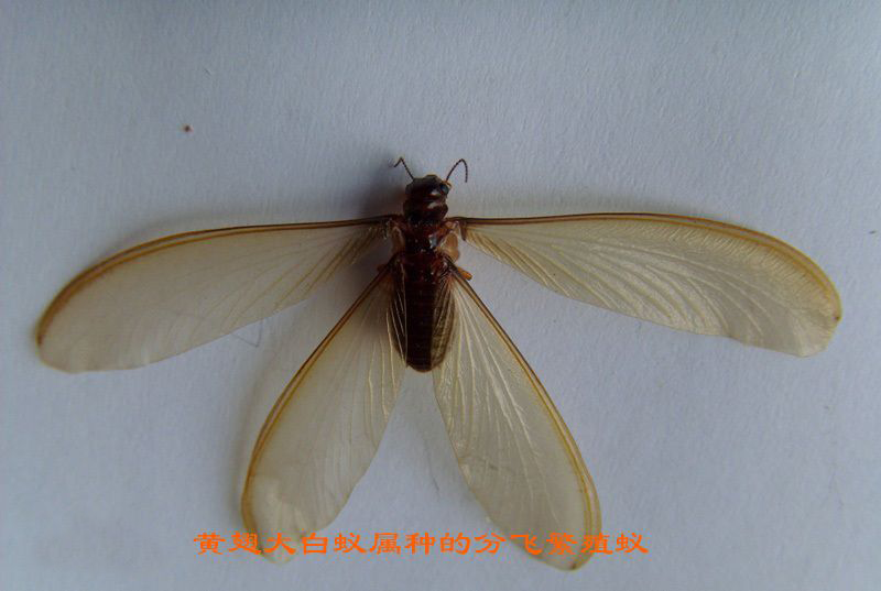 黃翅大白蟻,Macrotermes barneyi (Light, 1924),等翅目白蟻科大白蟻屬的一種昆蟲(chóng)。分布于江西、安徽、江蘇、浙江、福建、臺(tái)灣、湖南、湖北、廣東、廣西、海南、四川、貴州、云南、香港等地,寄主于桉樹(shù)、杉木、水杉、橡膠、刺槐、樟樹(shù)、檫木、泡桐、油茶、板栗、核桃、二球懸鈴木、楓香樹(shù)等,還危害甘蔗、高粱、玉米、花生、大豆、紅薯、木薯等農(nóng)作物。